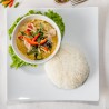 Sliced Chicken, Green Beans, Bamboo Shoot, Mint Leaf and Coconut Milk Slow- Cooked with Spices and Green Curry Paste, Served with Steamed Rice.